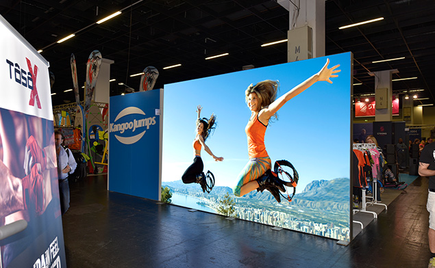 匯百美拉布燈箱與西班牙展會合作之雙面拉布燈箱案例案例說明:160mm雙面卡布燈箱,采用熱轉印畫面,高亮顯示畫面的真實色彩,雙面燈箱的特色是:一個燈箱,兩個廣告,將廣告范圍擴大化,充分利用空間,廣告效益